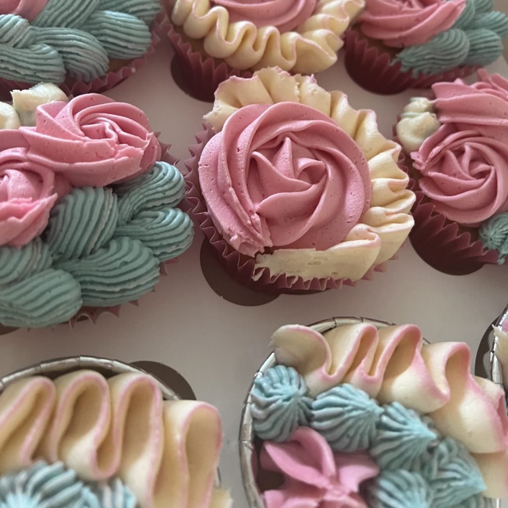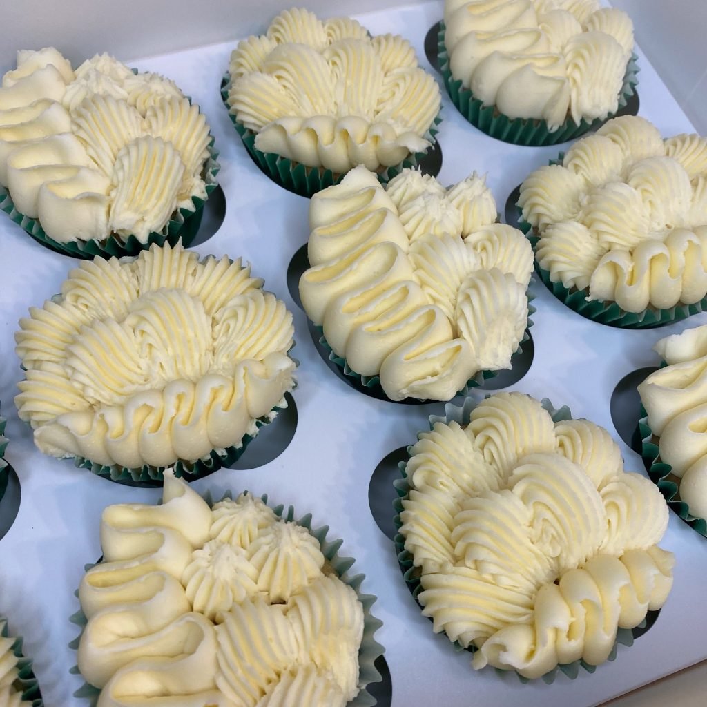 Our cupcakes come in boxes of 12 or 24 with one flavour of sponge and one flavour of buttercream.